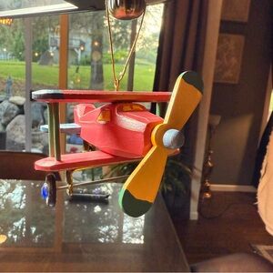 Pier 1 Imports Biplane Ornament Toy Airplane Christmas Tree Wood 2005 Vintage