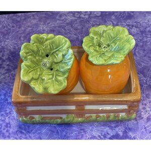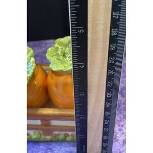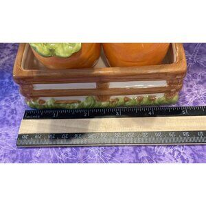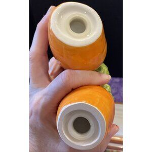 Pier 1 Imports Carrot Ceramic Salt Pepper Shakers Caddy Set Easter Spring