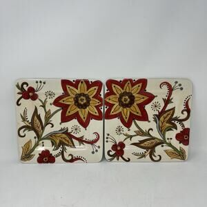 Pier 1 Imports Carynthum Square Salad Plate 8.75" Floral Set of 2 Earthenware