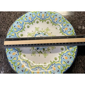 The Pier 1 Imports Celeste salad Plate features a vibrant blue and green floral pattern, making it both decorative and functional for any dining setting.