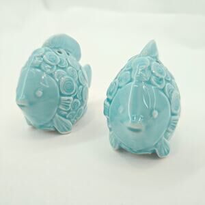 Pier 1 Imports Ceramic Fish Salt & Pepper Shakers Blue w Stoppers