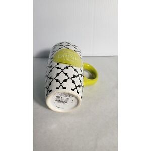 Elevate your morning ritual with this charming Pier 1 Imports coffee mug. The tall silhouette and eye-catching black and white geometric pattern create a modern, stylish look. A vibrant green handle and a playful "Great minds DRINK alike" message add a touch of whimsy. This mug is perfect for enjoying your favorite hot beverage at home, in the office, or as a thoughtful gift for a friend.