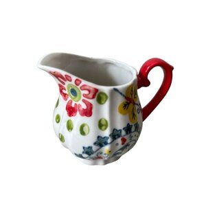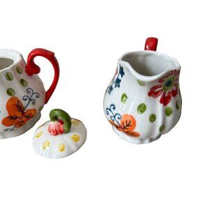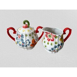 Pier 1 Imports Creamer Sugar Set Hand Painted White Red Floral