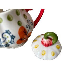 Pier 1 Imports Creamer Sugar Set Hand Painted White Red Floral 4" x 4" Like New Condition