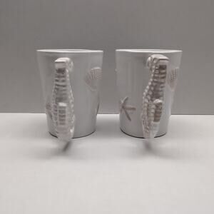 Pier 1 Imports Handpainted Earthenware Mug Seahorse Beach Sea Shell Nautical