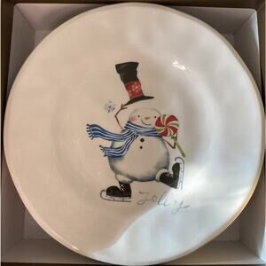Pier 1 Imports Holiday Appetizer Plates Set Four NEW NIB Christmas Santa Snowman
