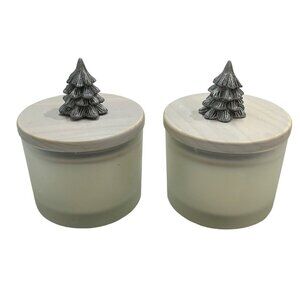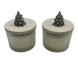 Pier 1 Imports Holiday Forest Festive Candle 2 Wick Silver Tree Lid Set Of 2