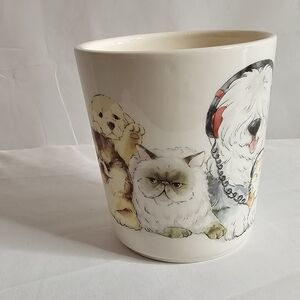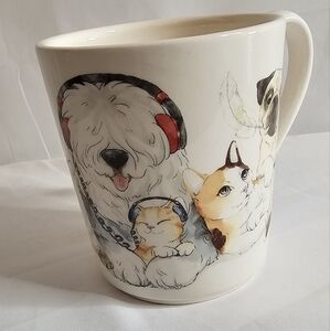 Pier 1 Imports Ironstone Oversized Coffee Mug Cup Dogs & Cats Pets 4.5" 14oz