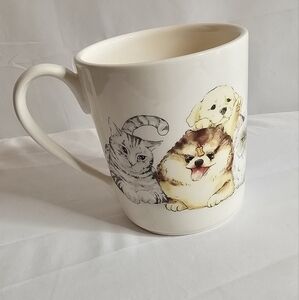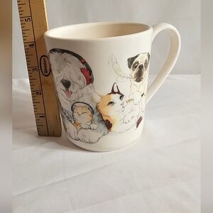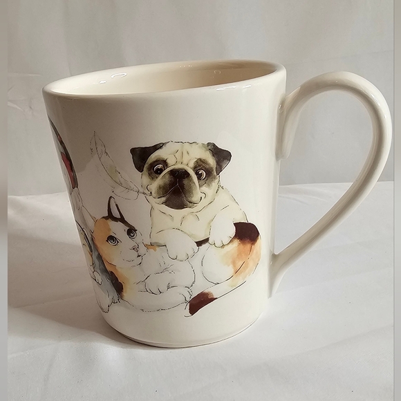 Pier 1 Imports Ironstone Oversized Coffee Mug Cup Dogs & Cats Pets 4.5" 14oz