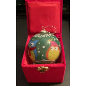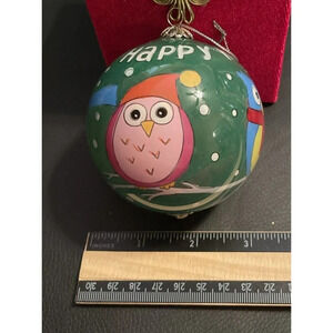 Pier 1 Imports Li Bien 3" Hand Painted Holiday Owls Christmas Ornament 2012 NEW