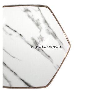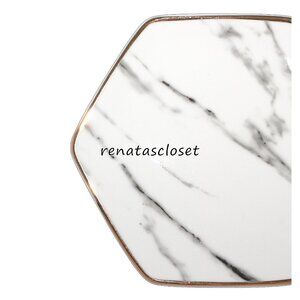 Use this dish as a perfect catchall tray for rings, keys or loose change. Its timeless marbled design and golden trim will glam up any part of your home. Ceramic. Imported.