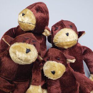 Pier 1 Imports Monkey Family of 4 in Banana Plush Velour Stuffed Animal Toy Set