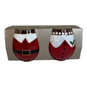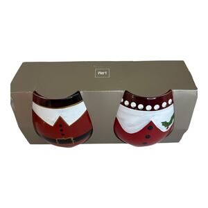 Pier 1 Imports Mr and Mrs Claus Hand Painted Stemless Glasses NIB Christmas