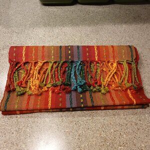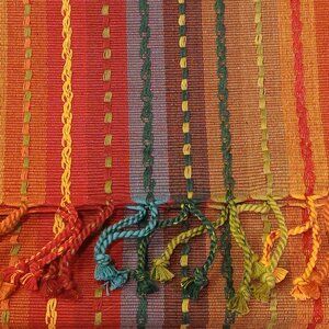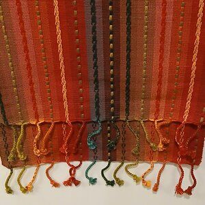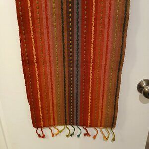 Pier 1 Imports Multi-Stripe Boho Woven Embroidered Table Runner with Fringe
