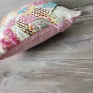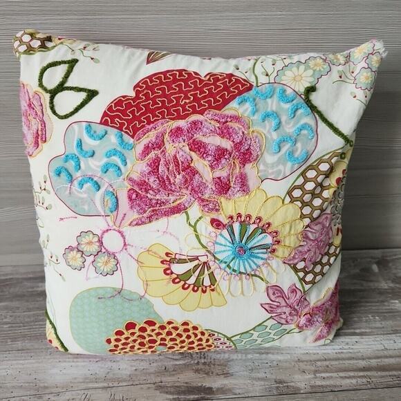 Pier 1 Imports Multicolored Floral Pastel Embroidered Pillow Pink Stripe Back
