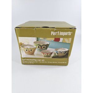 Pier 1 Imports Owl Ceramic Measuring Cup 4 Piece Set New In Original Box
