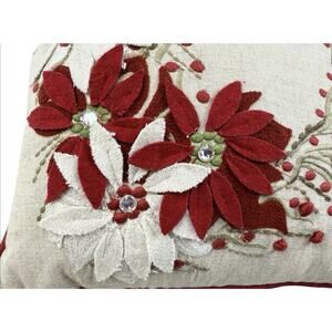 Pier 1 Imports Pillow Poinsettia Appliqué Berry Wreath Christmas Decor 15X15