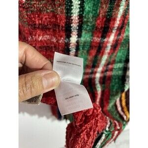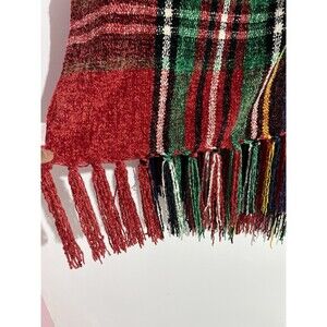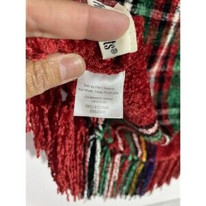 Pier 1 Imports Red Tartan Chenille Throw Blanket 50x70 Holiday Warm Cozy Tassels