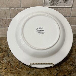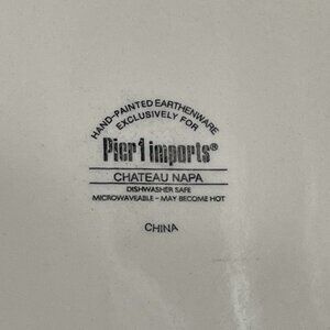 This Pier One Imports large 10.75" diameter soup dinner pasta Italian meal serving bowl has Chateau Napa Valley hand painted red and green grape vines with yellow flower accents. This item is made of a high quality earthenware ceramic that is dishwasher and microwave safe. It is in good to excellent pre owned clean condition with no breakage issues. Please review the pictures for more details and size measurement information, thank you.