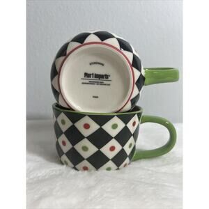 Pier 1 Imports Stoneware Coffee Mug Cup Harlequin Christmas Diamonds Dots
