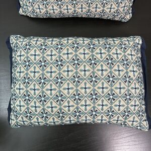 Pier 1 Imports Throw Pillows Set of 2 Teal Navy Blue Embroidered Rectangle