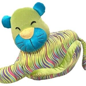 Pier 1 Imports Tiger Cat Accent Pillow Plush Stuffed Animal Green Jewel Tones 24 Inch