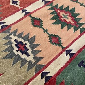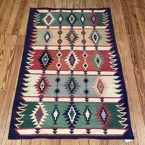 Pier 1 Imports Turkish Kilim Aztec Cotton Rare Area Rug Carpet Blue Boho Native