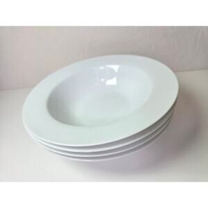 Pier 1 LUMINOUS White Porcelain 8 5/8" Rimmed Large Soup Bowls = SET OF 4