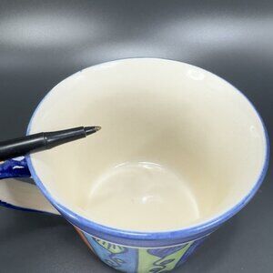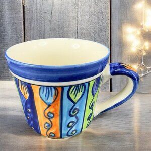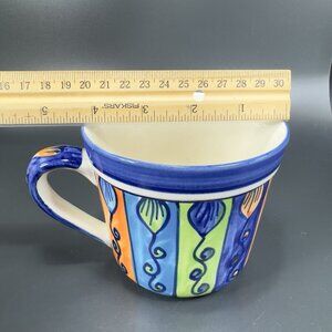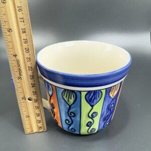 Pier 1 Large Coffee Mug Cup Set 2 Mexican Style Glaze Multicolor Cups Mugs Set