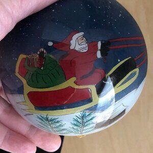 Pier 1 Li Bien Hand Painted Santa Sleigh Reindeer 1999 Christmas Glass Ornament