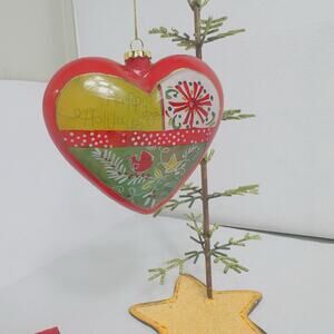 Pier 1 Li Bien Heart Glass Christmas Ornament Inside Hand Painted Holiday w/ Box
