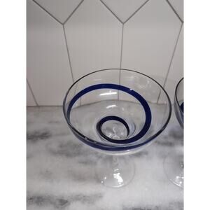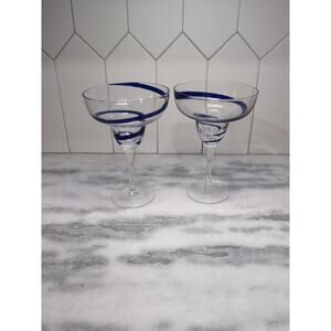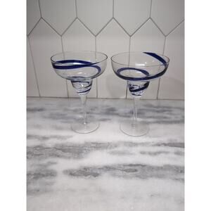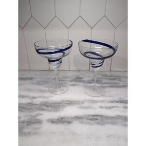 Pier 1 Margarita Glasses Swirl Line, Cobalt Blue Blown Glass, Set of 2, Barware