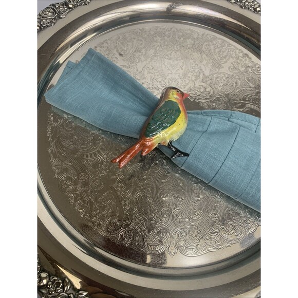 The Pier 1 Metal Bird Napkin Ring Holders are a charming and decorative addition to any dining table. Hand painted with a vibrant multicolor bird pattern, these napkin rings add a touch of whimsy to your dining experience.