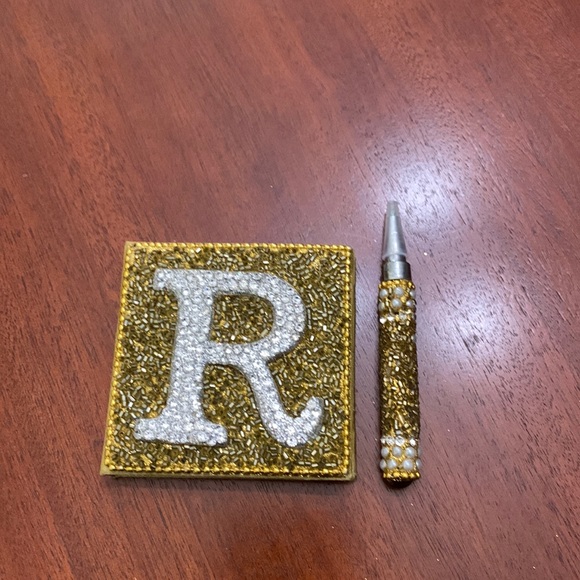 Brand new mini beaded note pad with “R” monogram matching pen set. Blank pages. This would make a great gift.