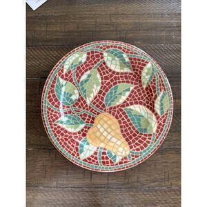 Pier 1 Mosaic Fruit Pear Green Cream Leaves Red Mosaic Tiles Salad Plate 2969