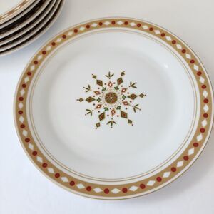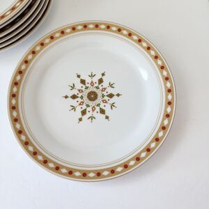 Pier 1 Nordic Snowflake Set of 7 Dessert Plates Christmas Holiday Red Green Gold