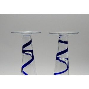 Pier 1 One Cobalt Blue SWIRLINE Pilsner Beer 10” Tall Swirl Glass Pair Handblown