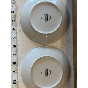 The plates are an original contemporary product from Pier 1 and were made in China. The backstamp is printed and the set includes two plates. These plates are a perfect addition to your table and will add a touch of romance to any meal.