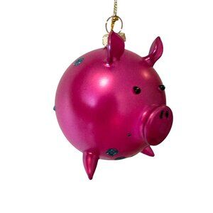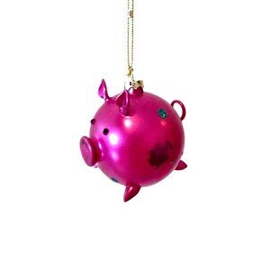 This pink pig ornament adds a whimsical touch to your holiday decor with its glittery finish and eclectic charm. Perfect as a hanging holiday ornament or fun Christmas accessory, it brings festive piggy flair to any tree or seasonal display.