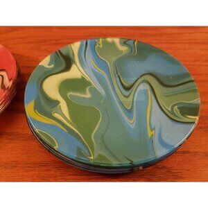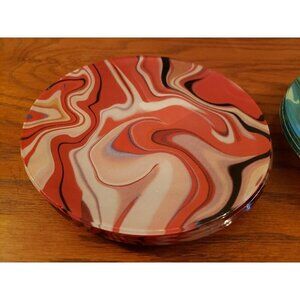 Pier 1 One Imports Swirl Appetizer Red Green Blue Plates Set 8 Vintage 6". Do not appear to be used stickers still on.