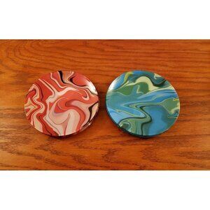 Pier 1 One Imports Swirl Appetizer Red Green Blue Plates Set 8 Vintage 6"