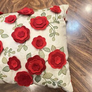 Pier 1 One Imports Throw Pillow Down Red Rose Felt Decor 3D Floral Cherry Red