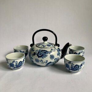 Pier 1 One Imports White Blue Paisley Floral Teapot 4 Cups