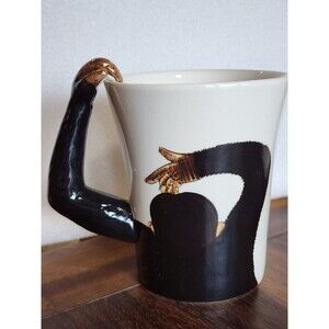 Pier 1 One Monkey Hand Painted Stoneware Mug Coffee Cup w/ 3D Arm Handle Chimp