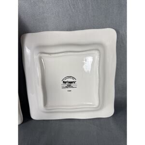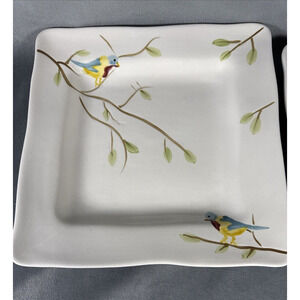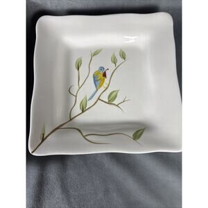 Pier 1 One ROBIN Earthenware 11" 8" Square Dinner Plate Bird Scalloped SET OF 2