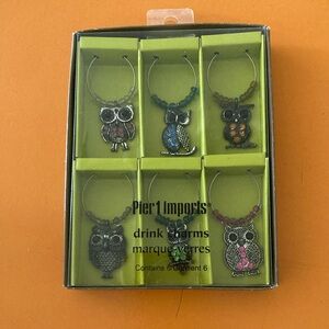 Pier 1 Owl Drink Charms Set - Silver, Green, Orange