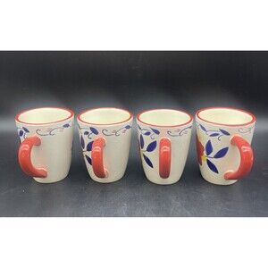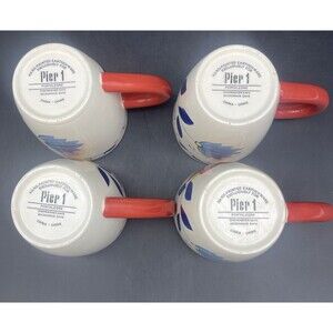 Pier 1 PORTALEGRE Floral Coffee Tea Cup Mug Set of 4 EUC.