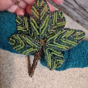 Set of vintage beaded palm tree with bronze metal trim. Great condition.