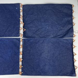 Pier 1 Placemats Set Of 9 Denim Beaded Fringe Country Boho Western Flaws