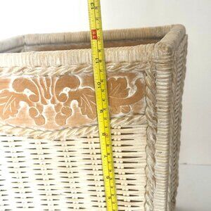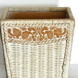 Pier 1 Rattan Waste Basket 11.5" White Wash Jamaica Collection Wicker Trash Can